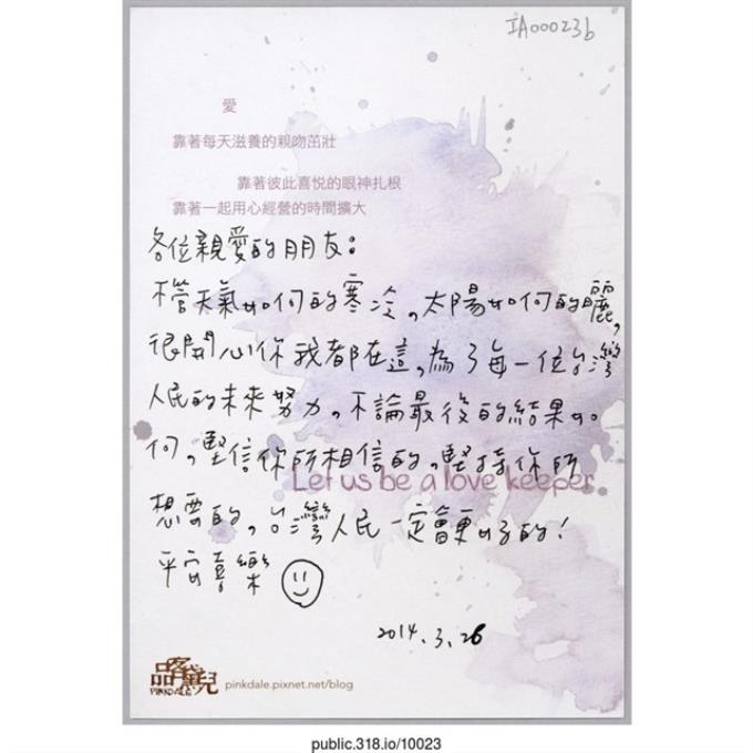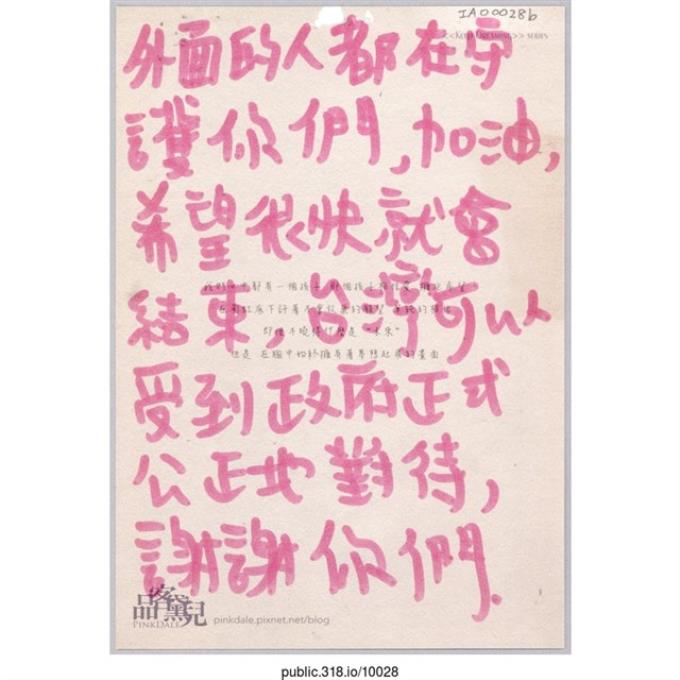 「外面的人都在守護你們」明信片
