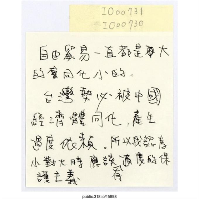 「自由貿易一直都是大的會同化小的。」便利貼