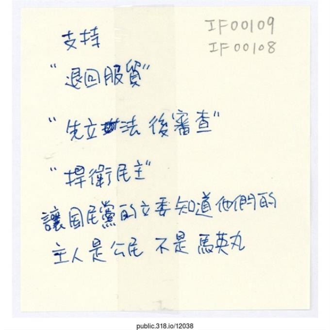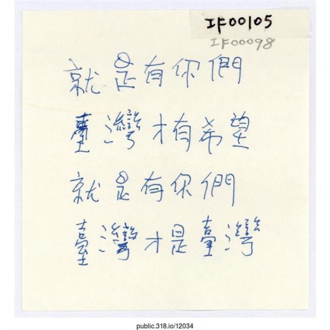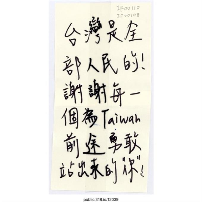 「台灣是全部人民的!」便利貼