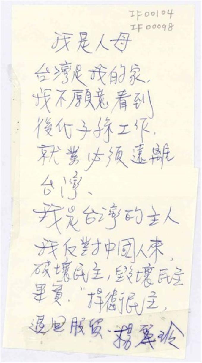 楊麗玲「我是人母台灣是我的家」便利貼