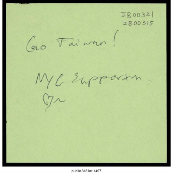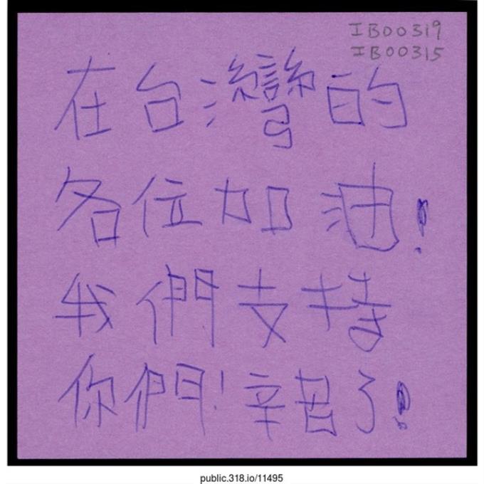 「在台灣的各位加油!」便利貼