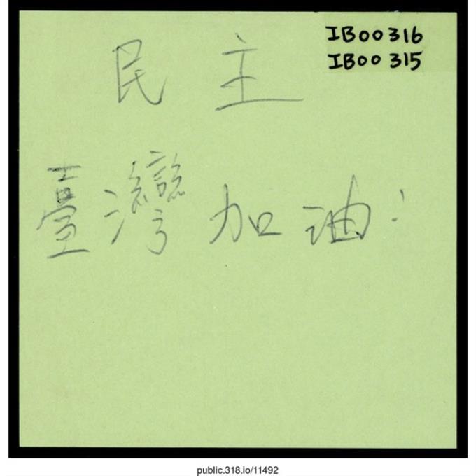 「民主台灣加油」便利貼