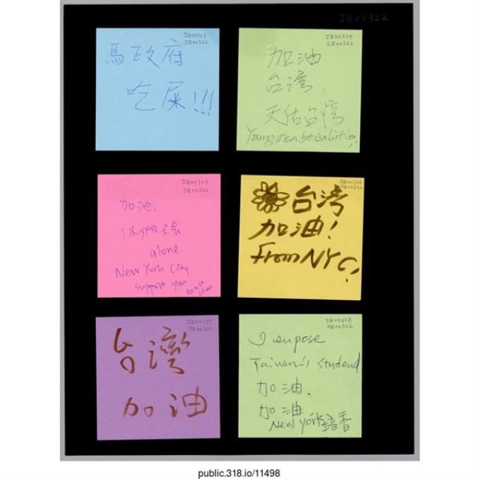 六張寫著支持者的留言便利貼