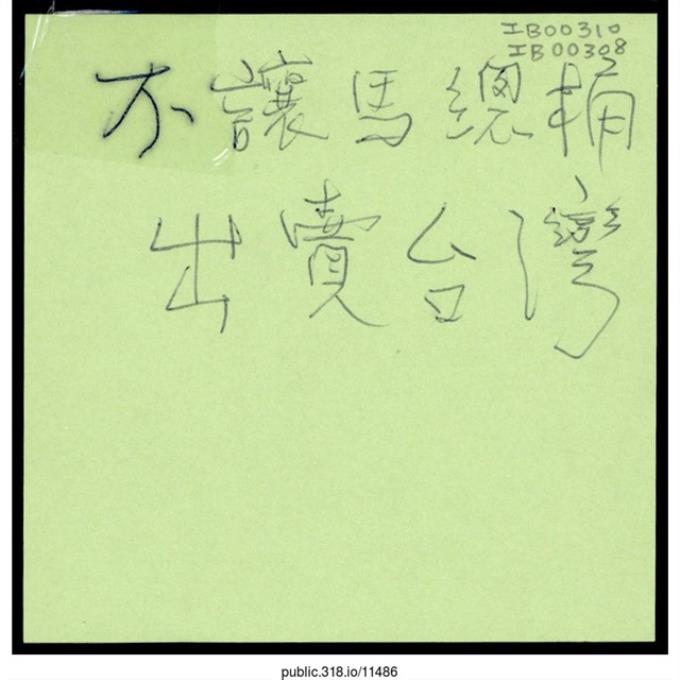 「不要讓馬總統出賣台灣」便利貼