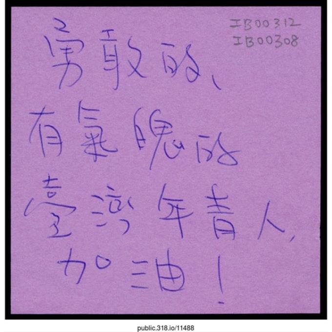 「勇敢的、有氣魄的臺灣年輕人」便利貼