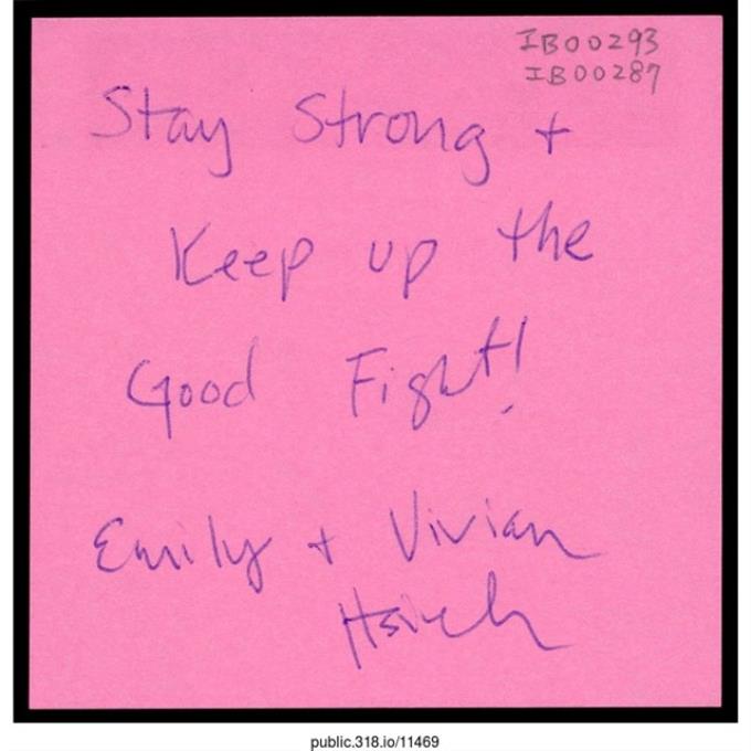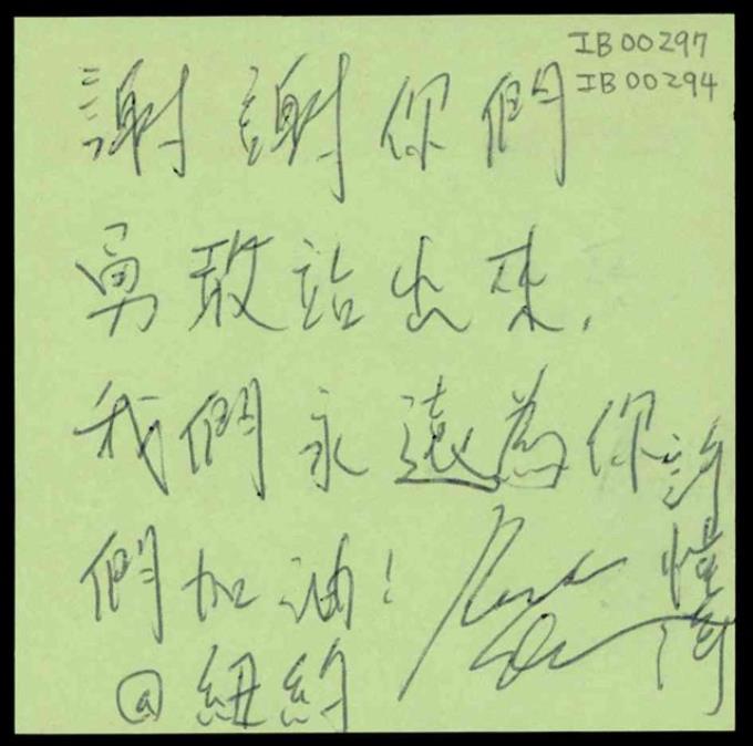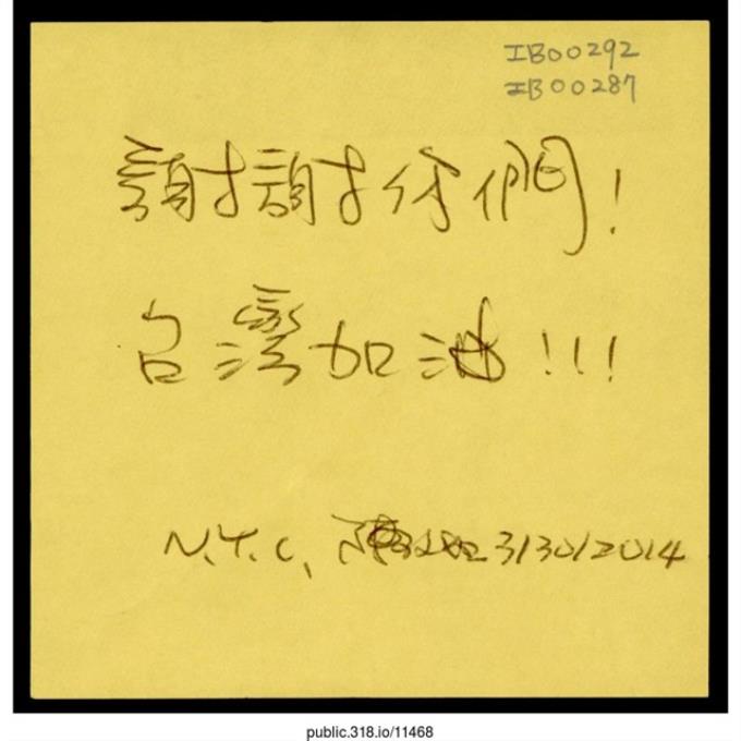 紐約陳小姐「謝謝你們!」便利貼