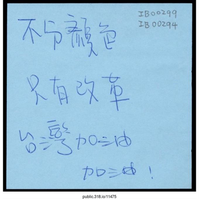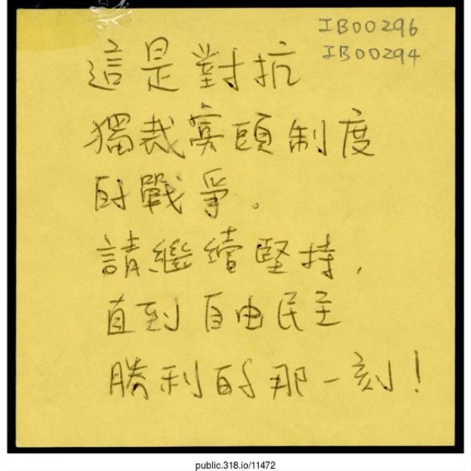 「這是對抗獨裁寡頭制度的戰爭。」便利貼