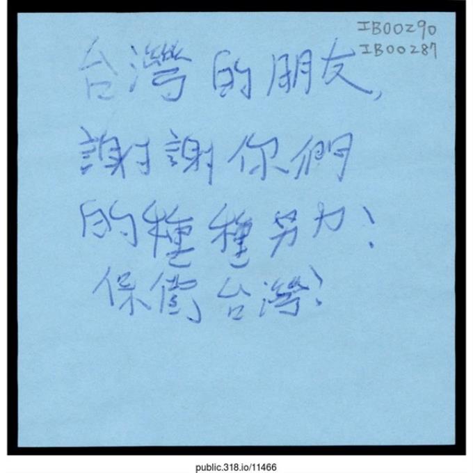 「保衛台灣!」便利貼