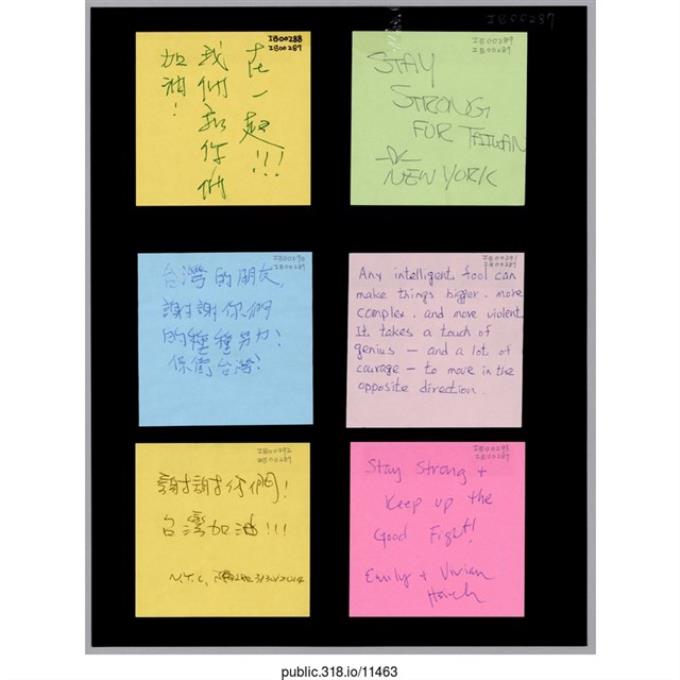 六張寫著支持者的留言便利貼