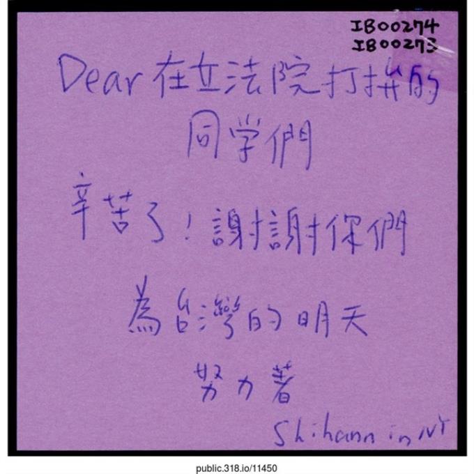 Shihann「為台灣的明天努力著謝謝你們」便利貼