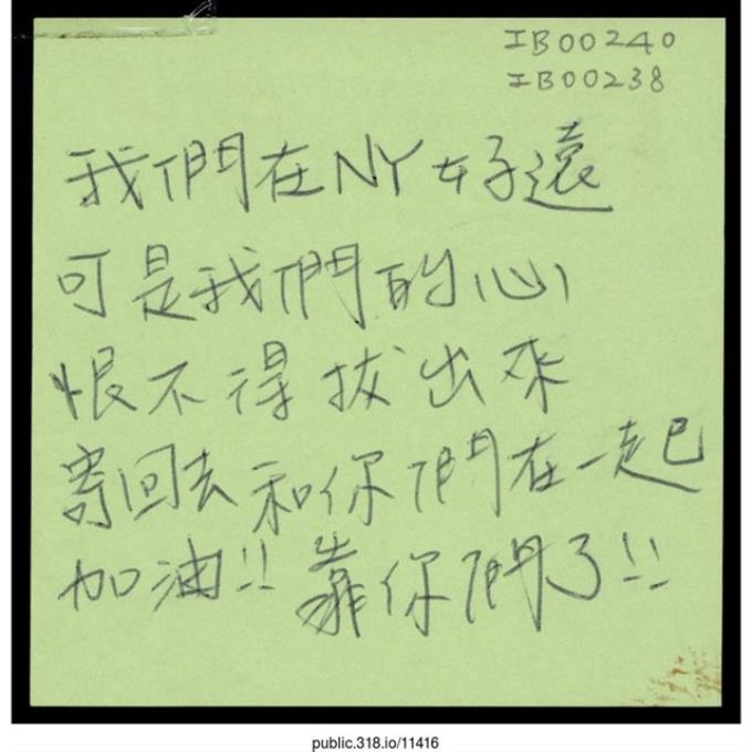 「可是我們的心恨不得拔出來寄回去和你們在一起」便利貼