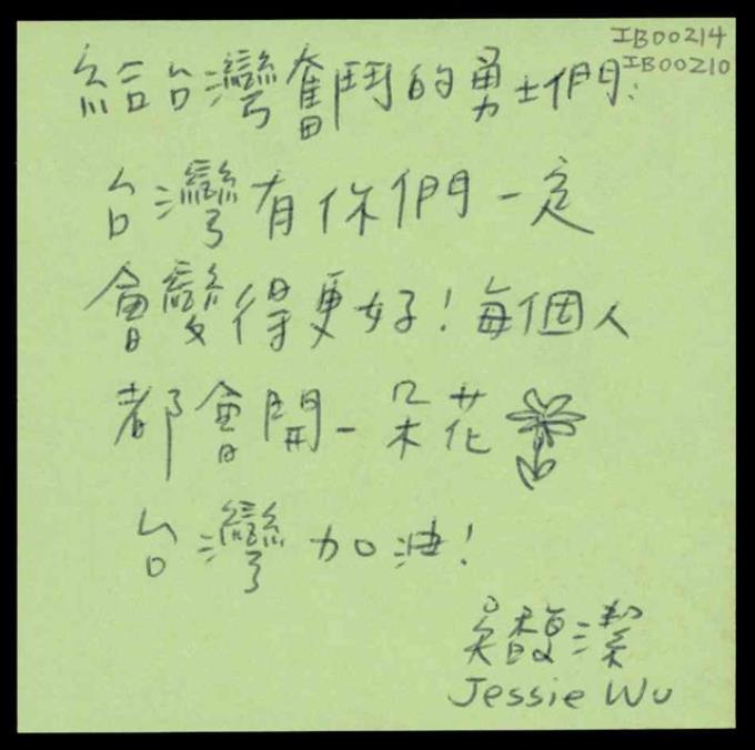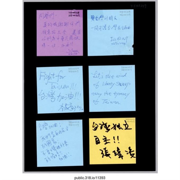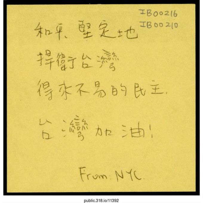 「堅定地捍衛台灣得來不易的民主」便利貼