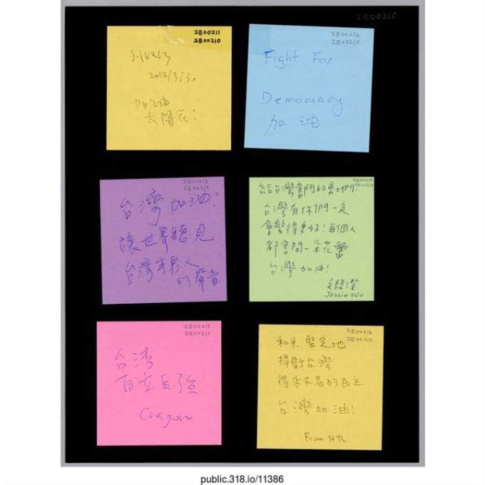 六張寫著支持者的留言便利貼