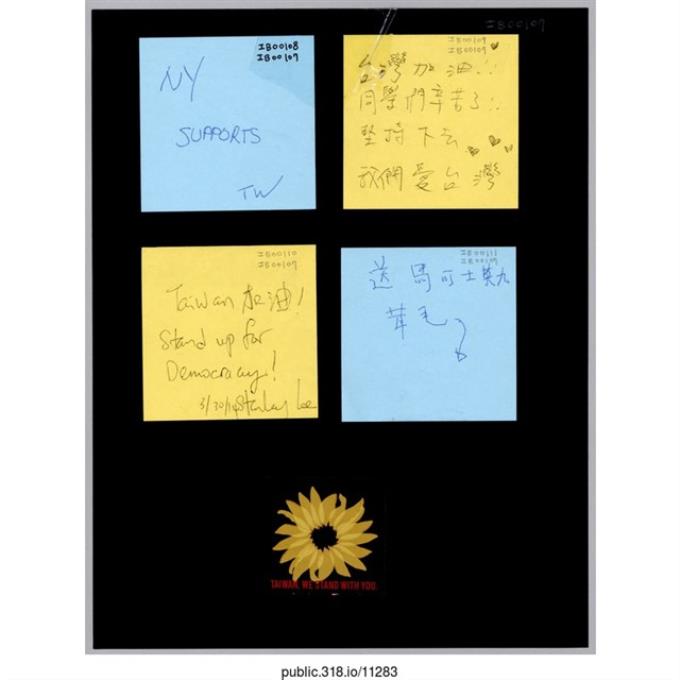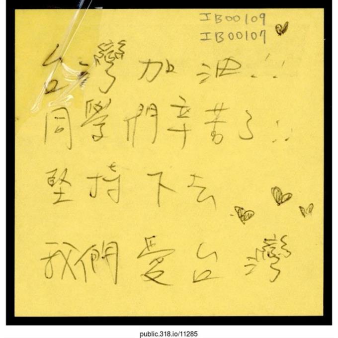 四張寫著支持者的留言便利貼