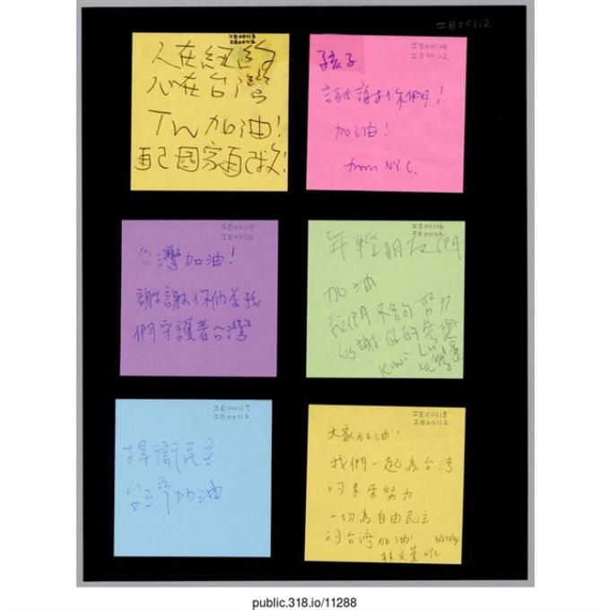 六張寫著支持者的留言便利貼