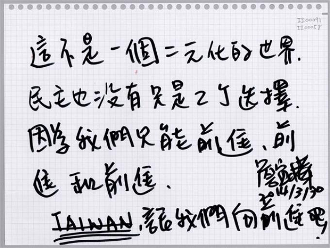 詹宜禎「這不是一個二元化的世界。」活頁紙
