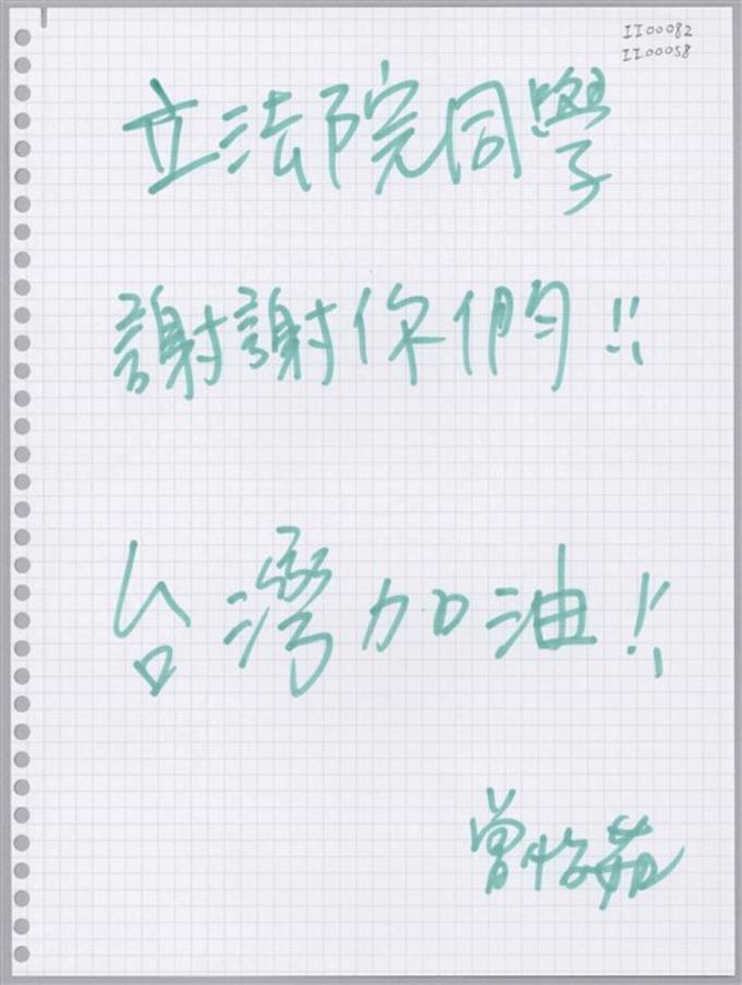 曾怡茹「立法院同學謝謝你們!」活頁紙