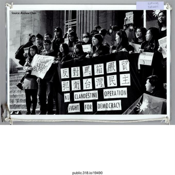 「反對黑箱服貿」黑白照片