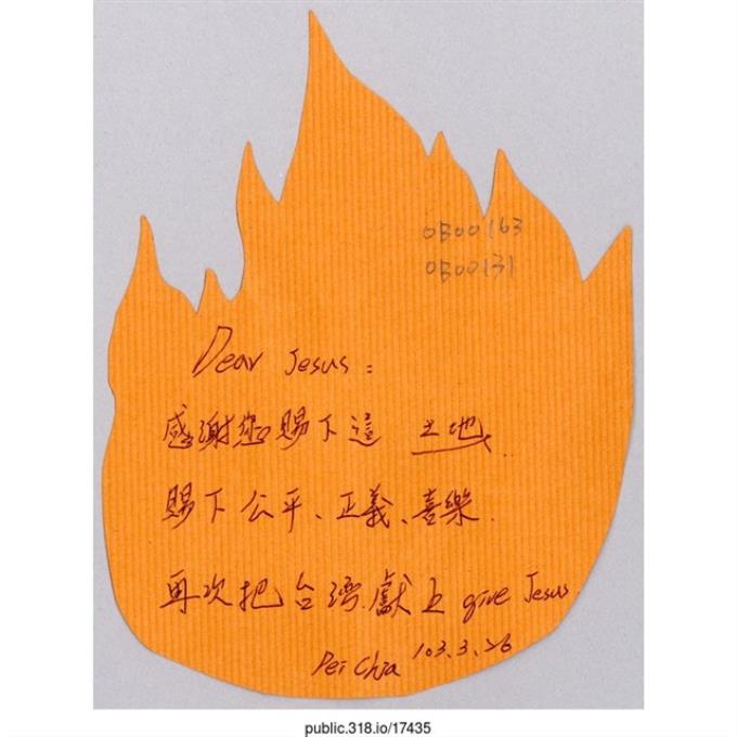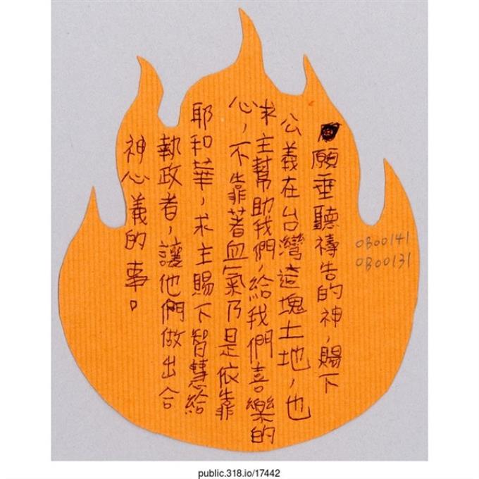 「祝福台澎住民以公民運動的方法」葉片型紙片