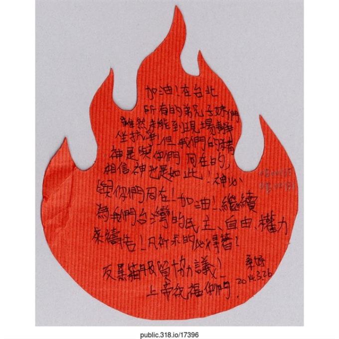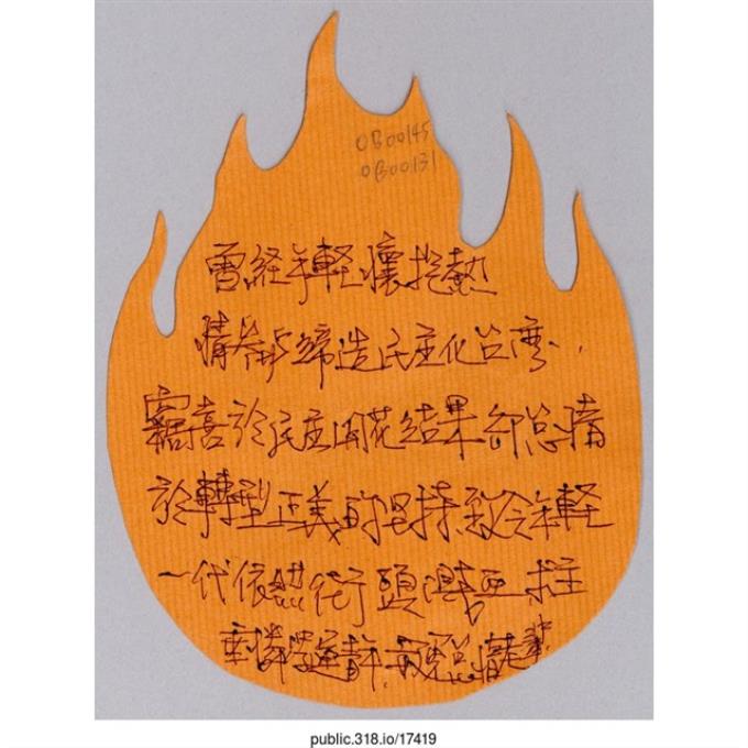 「曾經年輕懷抱熱情參與締造民主化台灣」葉片型紙片