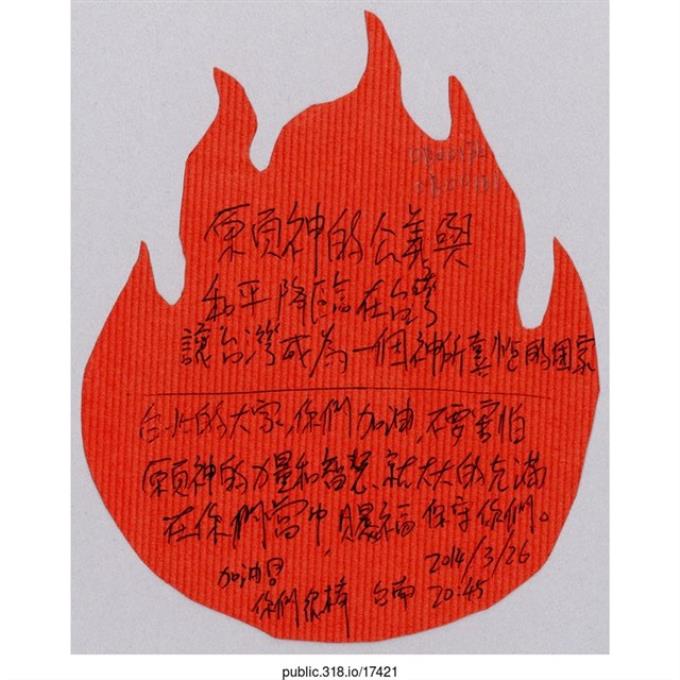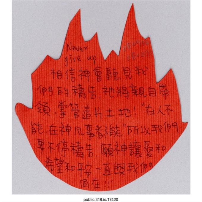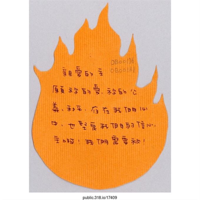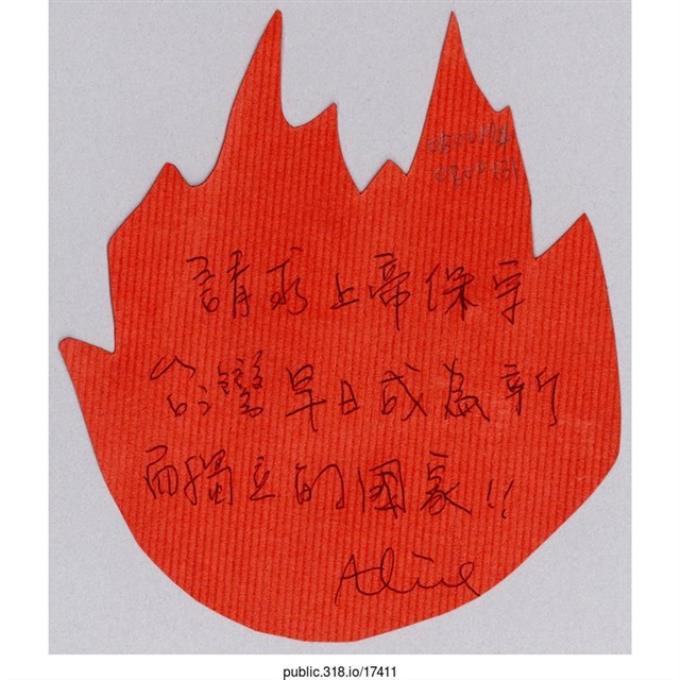 Alice「請求上帝保佑台灣」葉片型紙片