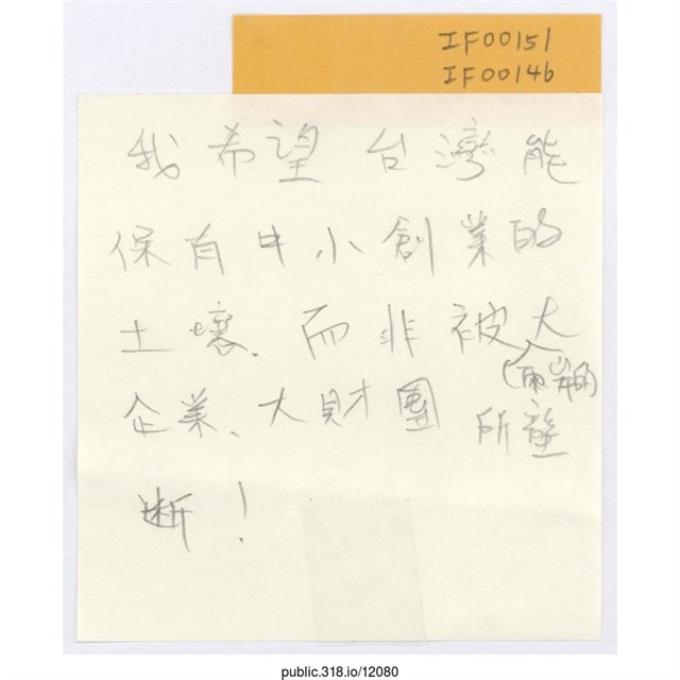 「我希望台灣能保有小創業的土壤」便利貼