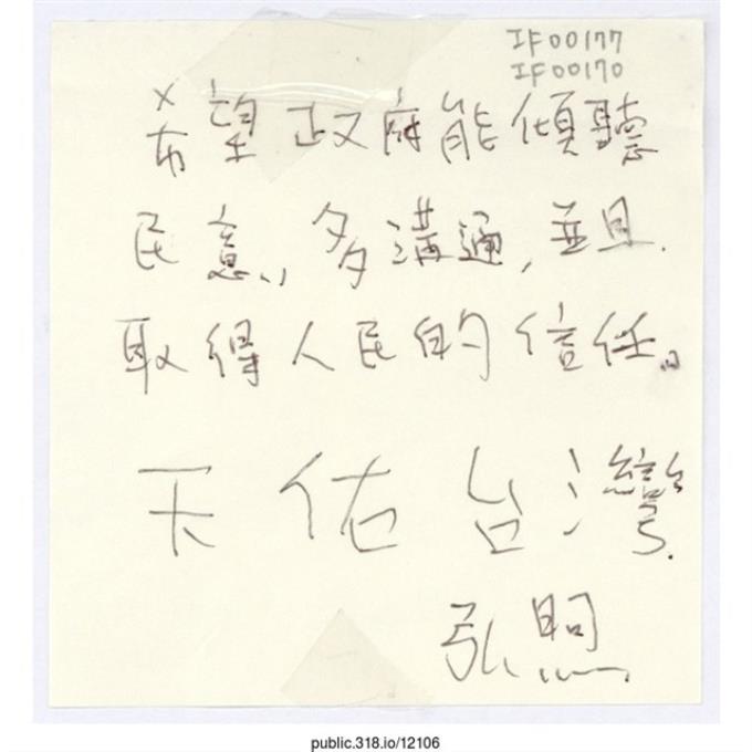 弘煦「希望政府能傾聽民意」便利貼