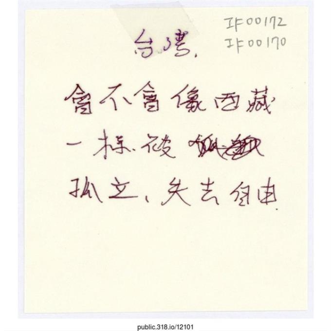 「會不會像西藏一樣被孤立」便利貼