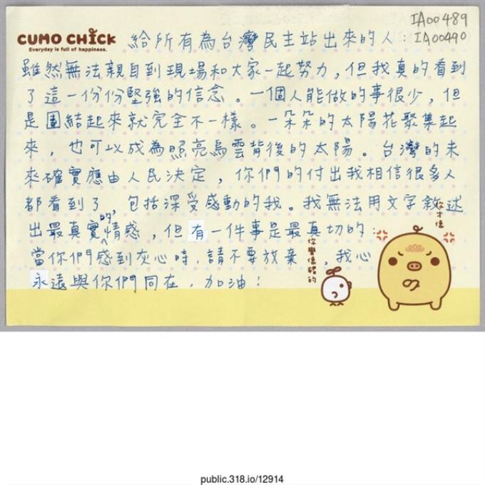 「給所有為台灣民主站出來的人:」信件