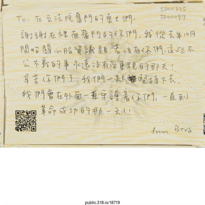Bird「To:在立法院奮鬥的勇士們」明信片