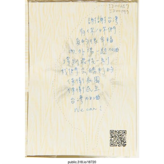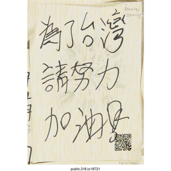 「為了台灣請努力加油!」明信片