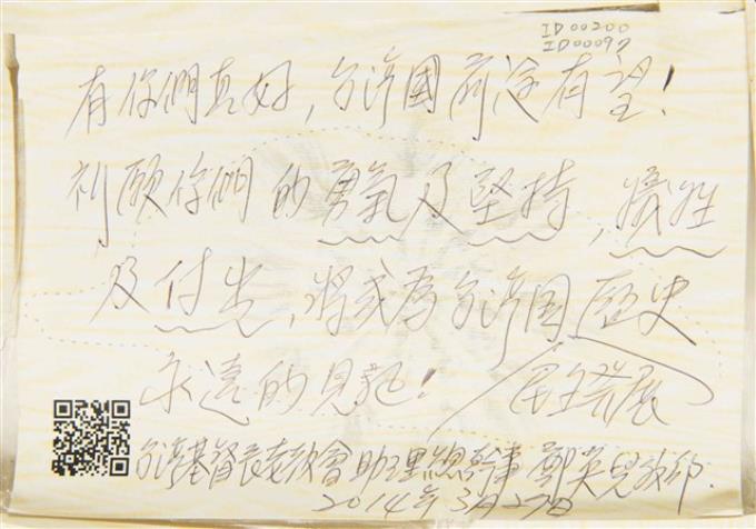 鄭英兒「將成為台灣國民主發展歷史永遠的見證!」明信片