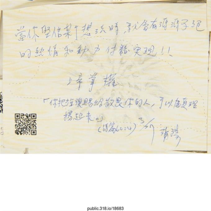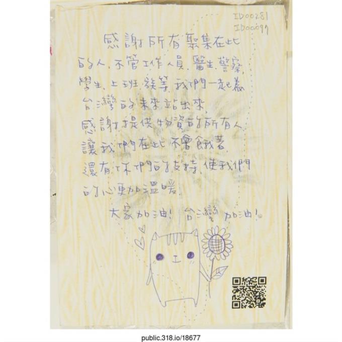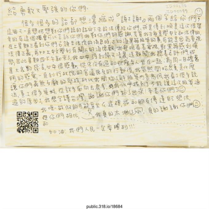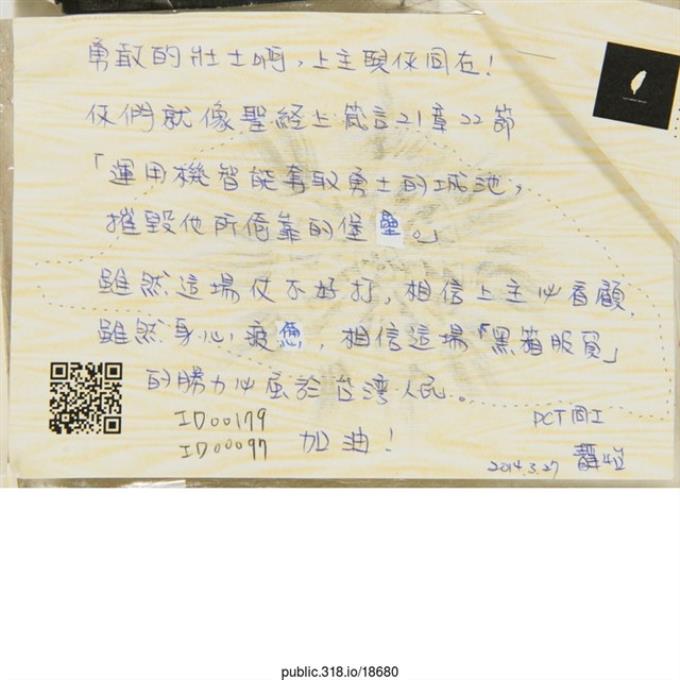 PCT同工 靜怡「相信這「黑箱服貿」的勝利必屬於台灣人民。」明信片