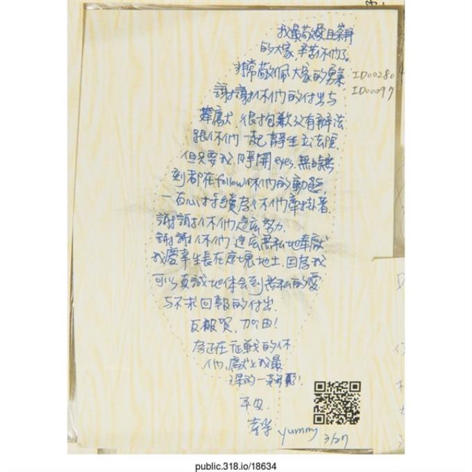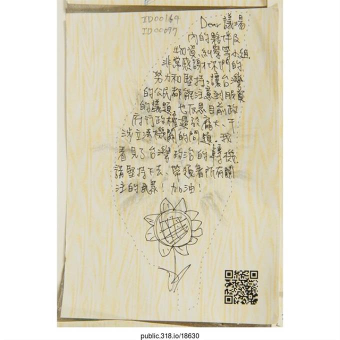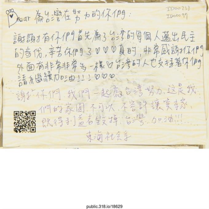 愛台灣的大四生「親愛的大家 你們好。」明信片
