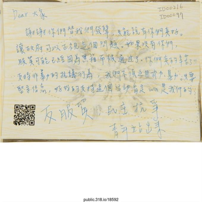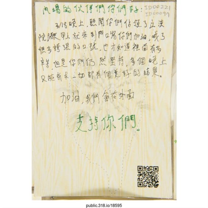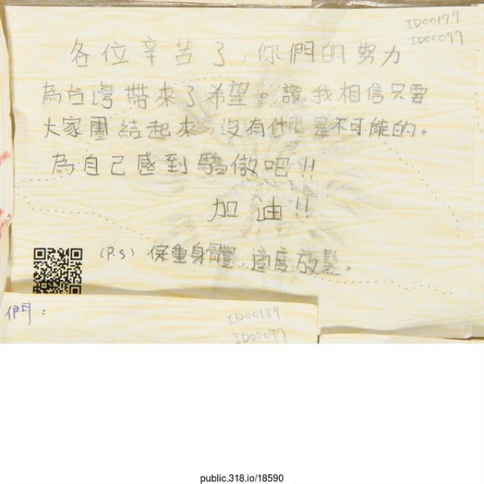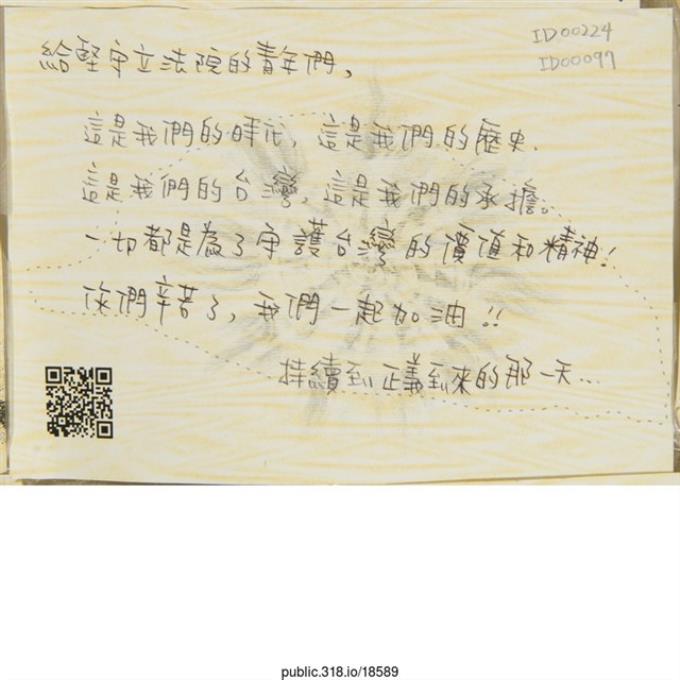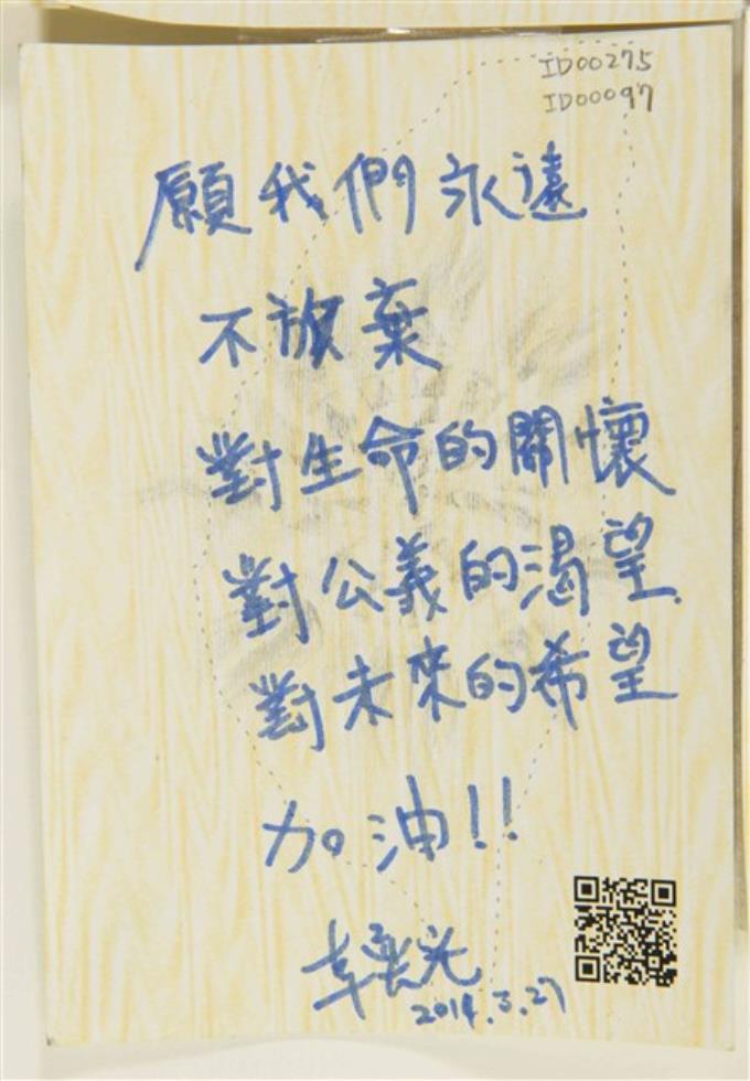 「給堅守立法院的青年們」明信片