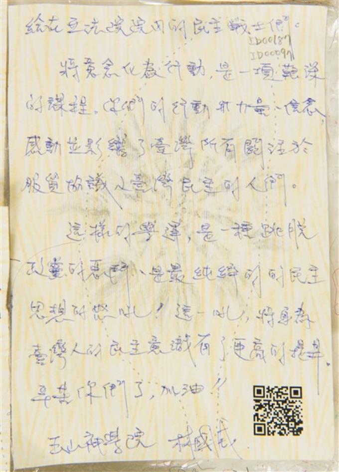 林國成「給在立法院院內的民主戰士們」明信片