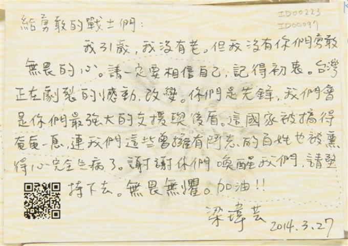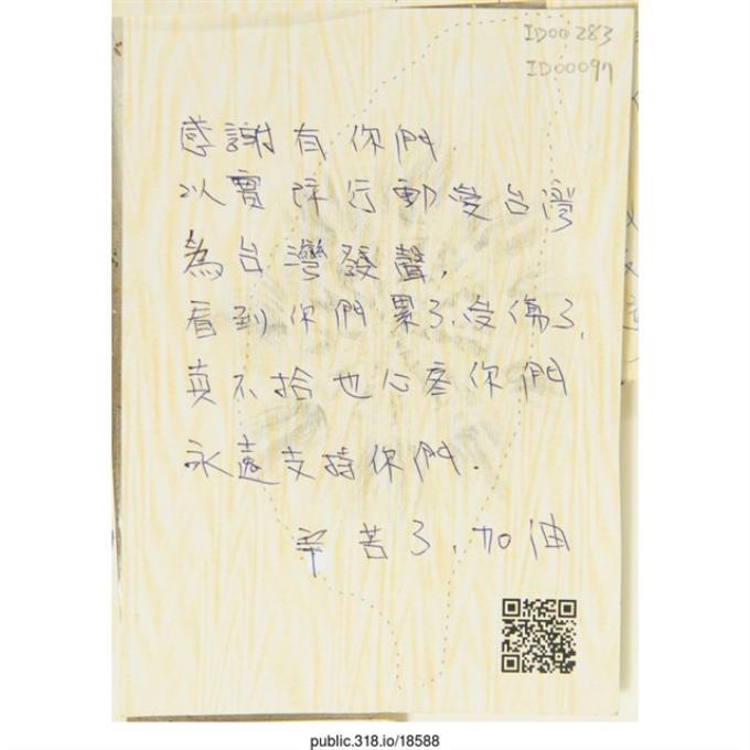 「你們讓台灣有了一點希望或許你們也累過」明信片
