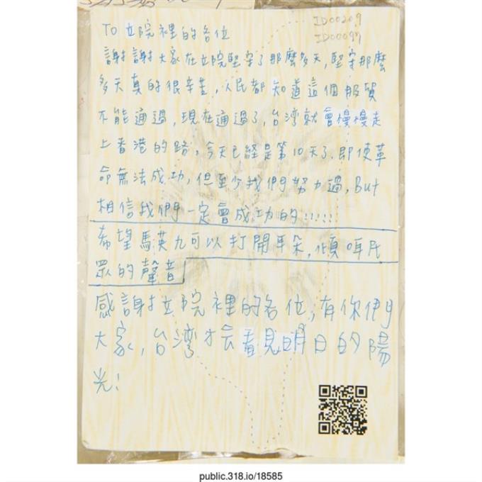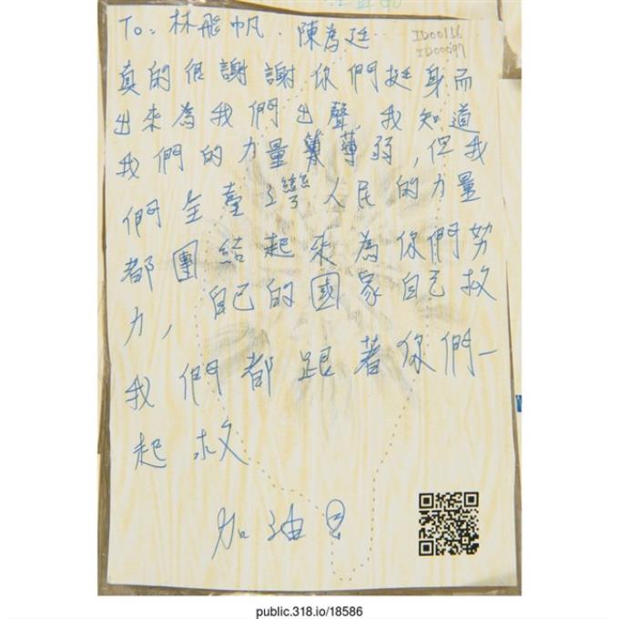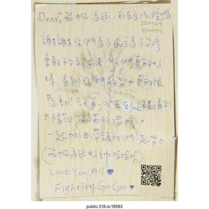 「Dear:飛帆、為廷、和在立法院的大家」明信片