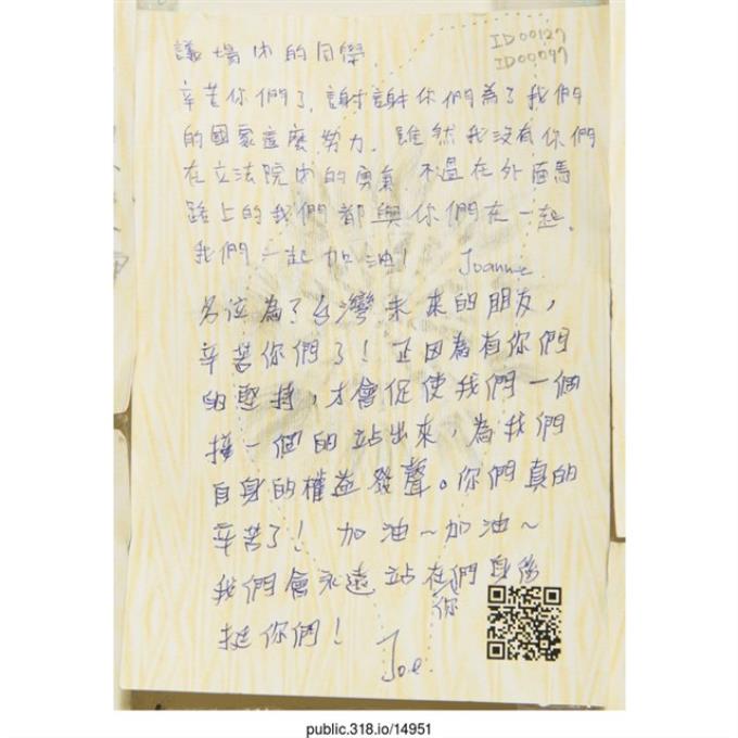 「To在議場裡面的朋友們」明信片
