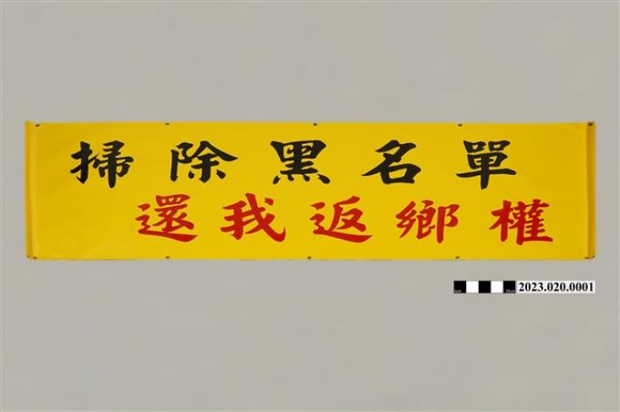 「掃除黑名單還我返鄉權」示威橫幅