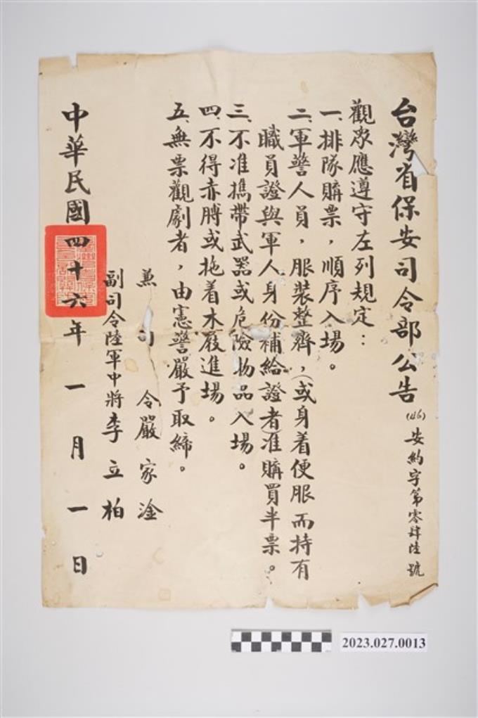 1957年1月1日臺灣省保安司令部公告