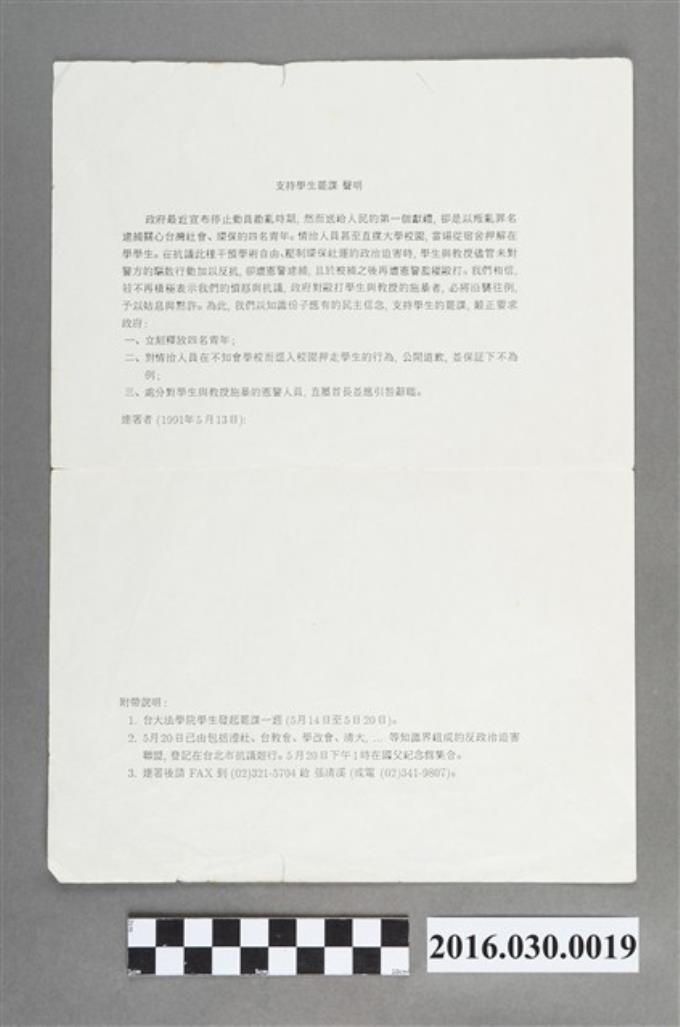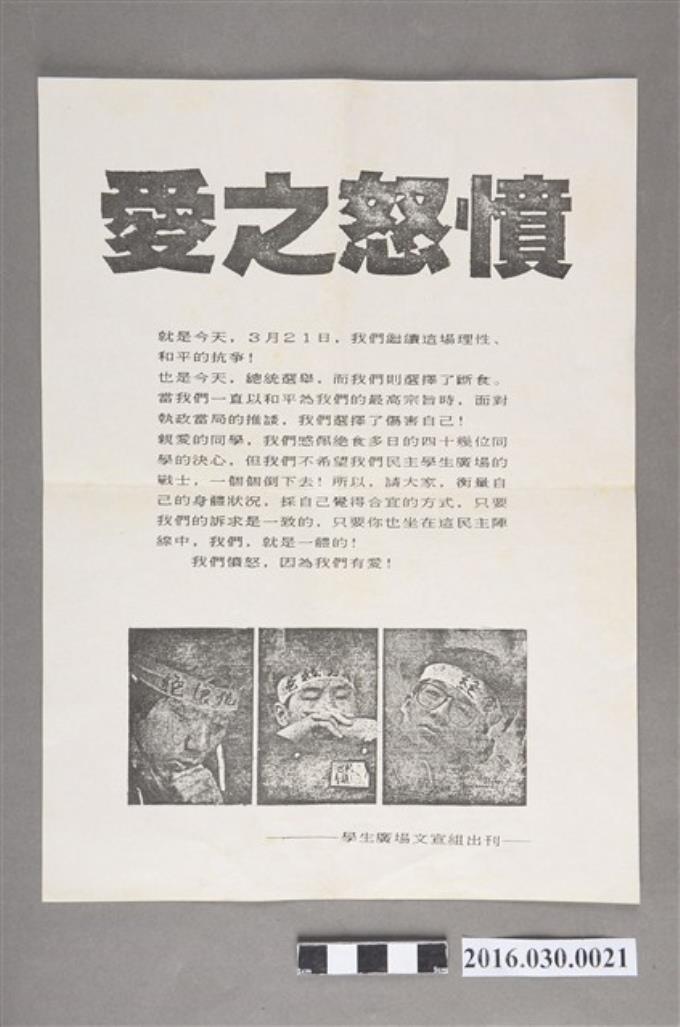 野百合運動學生廣場文宣組編〈愛之憤怒〉宣傳單