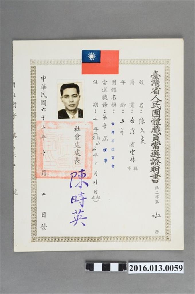 陳文炎任臺灣省體育會第十屆理事當選證明書