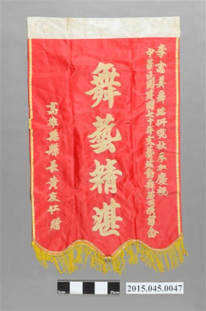 高雄縣表彰李惠美舞蹈研究社參加慶祝中華民國建國七十年文藝活動舞蹈公演留念錦旗