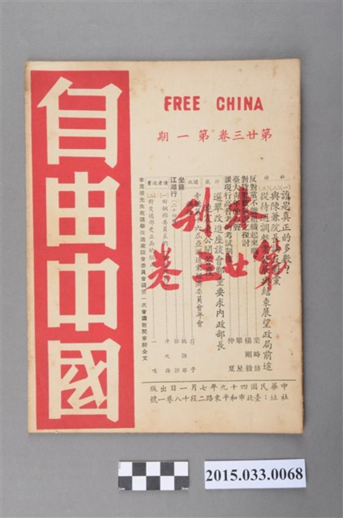 自由中國社《自由中國》第23卷1期總256號