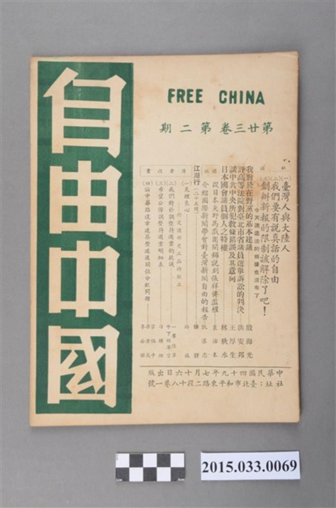 自由中國社《自由中國》第23卷2期總257號