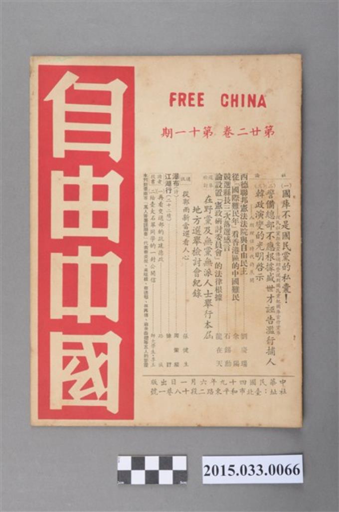 自由中國社《自由中國》第22卷11期總254號