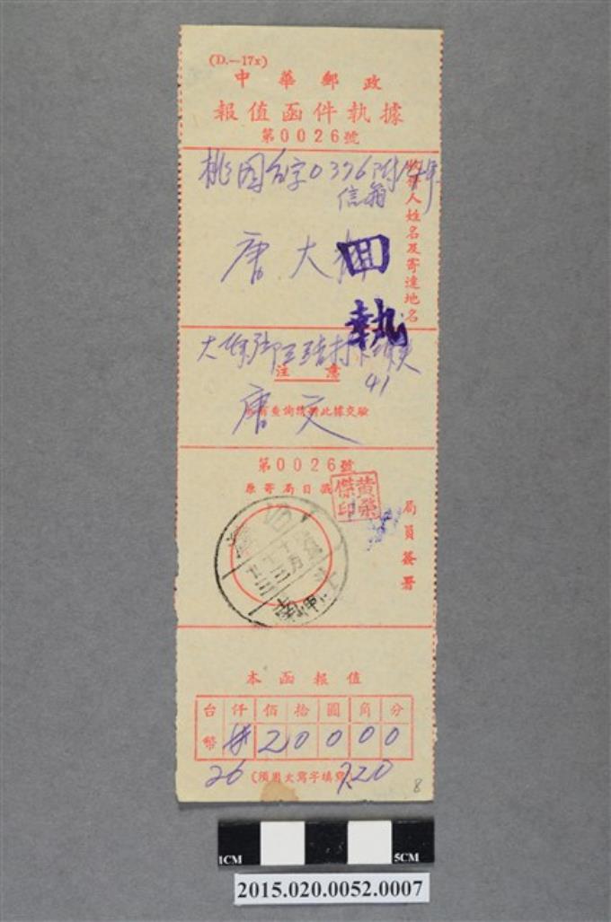 中華郵政報值函件執據