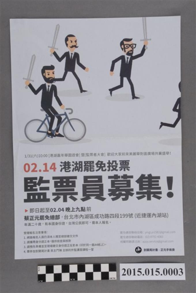 割闌尾計畫募集蔡正元立法委員罷免案監票員傳單