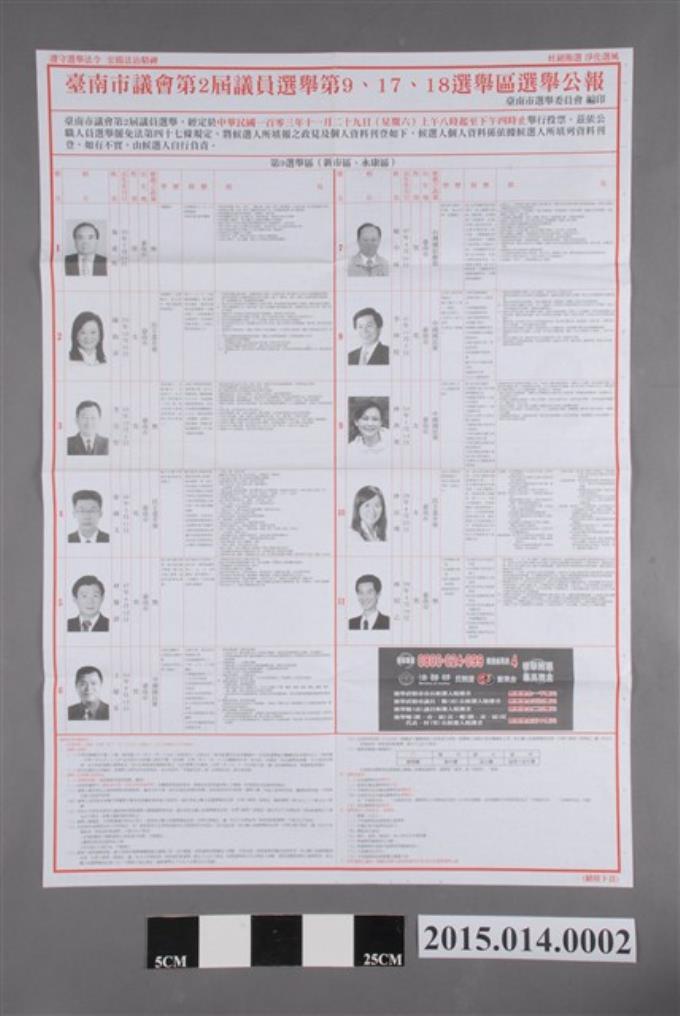 臺南市選舉委員會編印臺南市第2屆議員選舉第9、17、18選區選舉公報